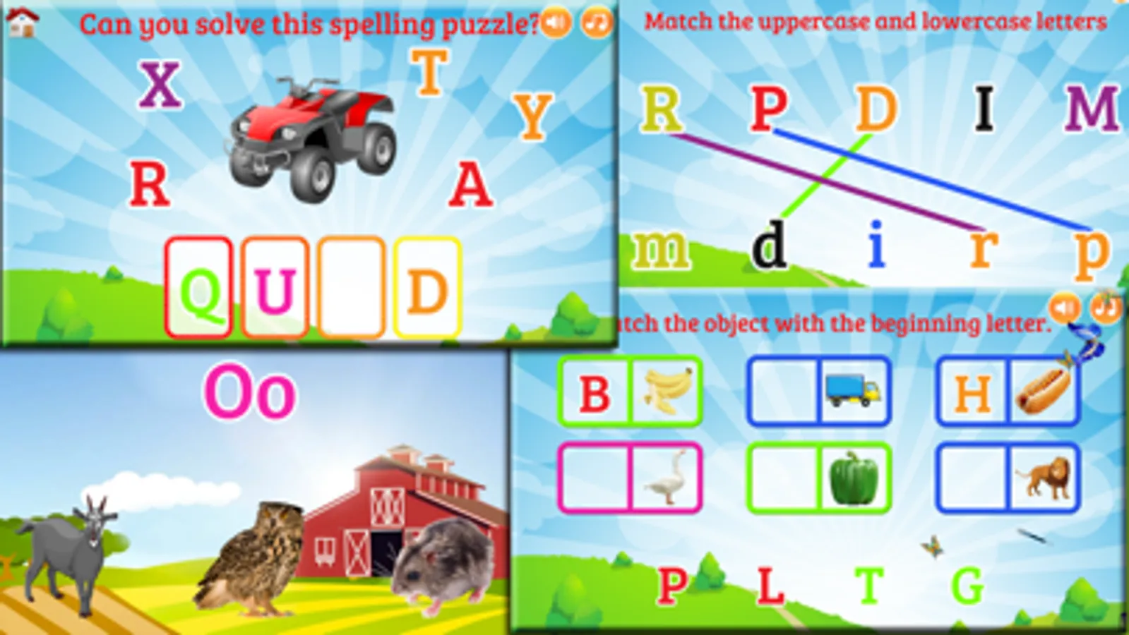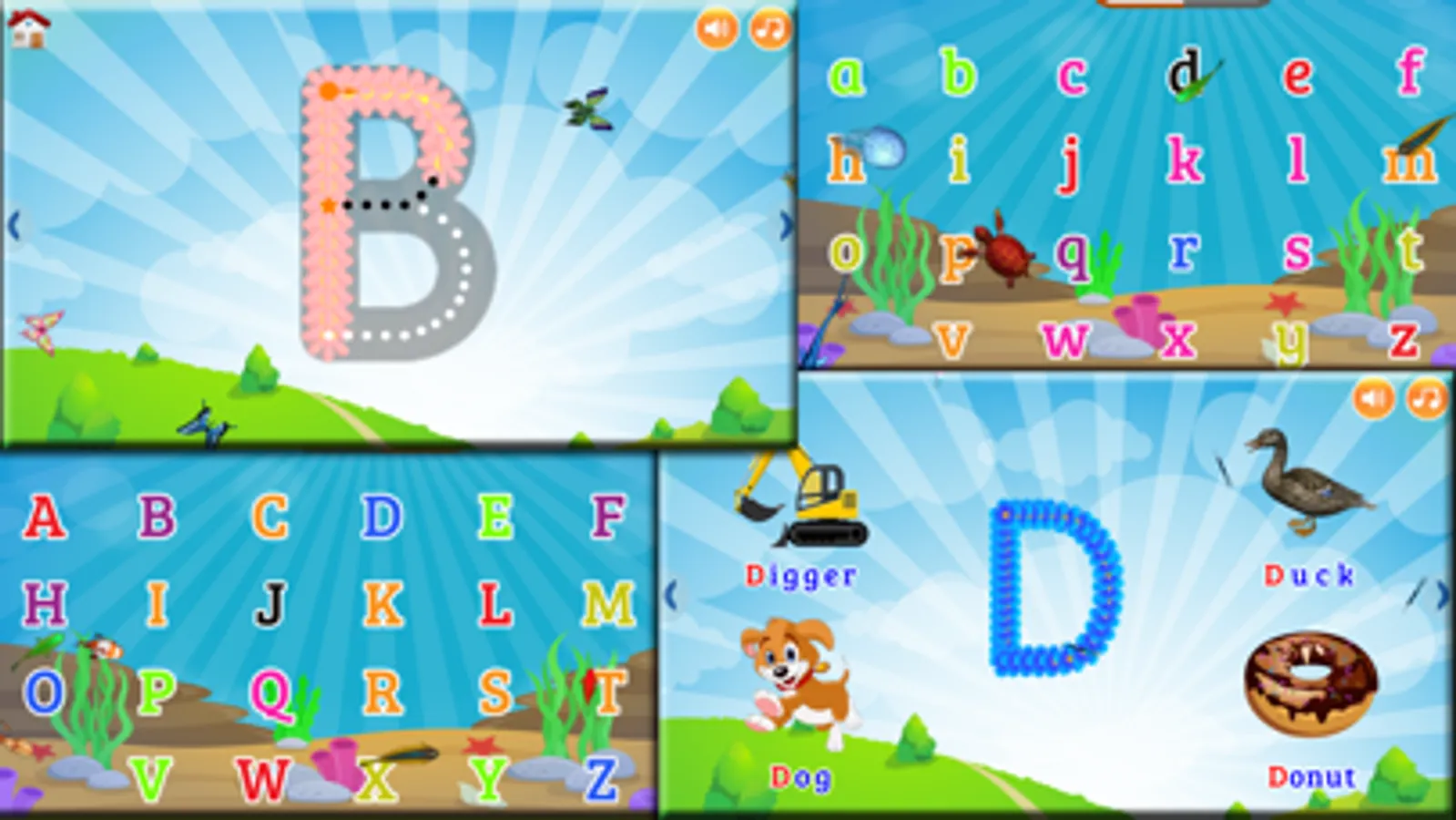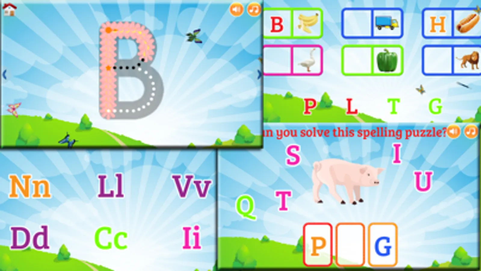 - 6 minigame: letter matching, letter quiz, spelling game, tracing game and more.