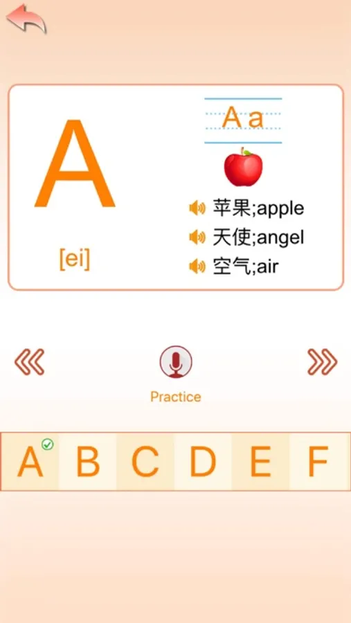 Contains the learning of English letters, phonetic symbols, and words. Each letter and word is equipped with pronunciation and a series of example words, pronunciation skills, etc., so that you can apply what you have learned.