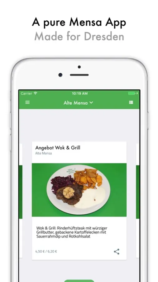 A clean, simple way to access the latest menus of student canteens in Dresden.