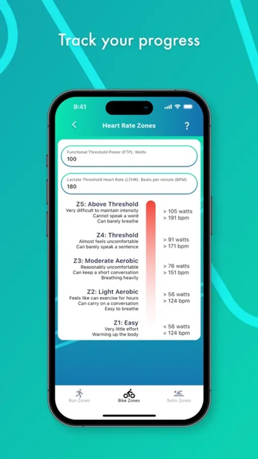 Training Zones are set for all disciplines, you can simply use Relative Perceived Effort (RPE) if you like to train by feel. If you have a bike power meter then you can undertake the suggested tests to set your Functional Threshold Power (FTP) and if you have a heart rate monitor you can set your Lactate Threshold Heart Rate (LTHR). Swim Zones can be set with Critical Swim Speed (CSS).