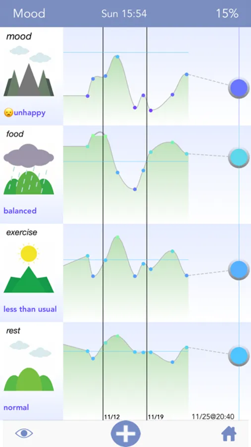 Knomee is a self-tracker app for mood, health, sports, lifestyle … you track whatever you want.