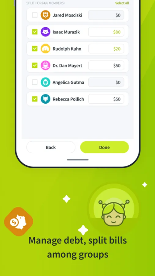 - Group profile: spending management between members of a group. It might be a group of friends on a trip, at a party or roommates who need to share rental fee, utilities, household essentials