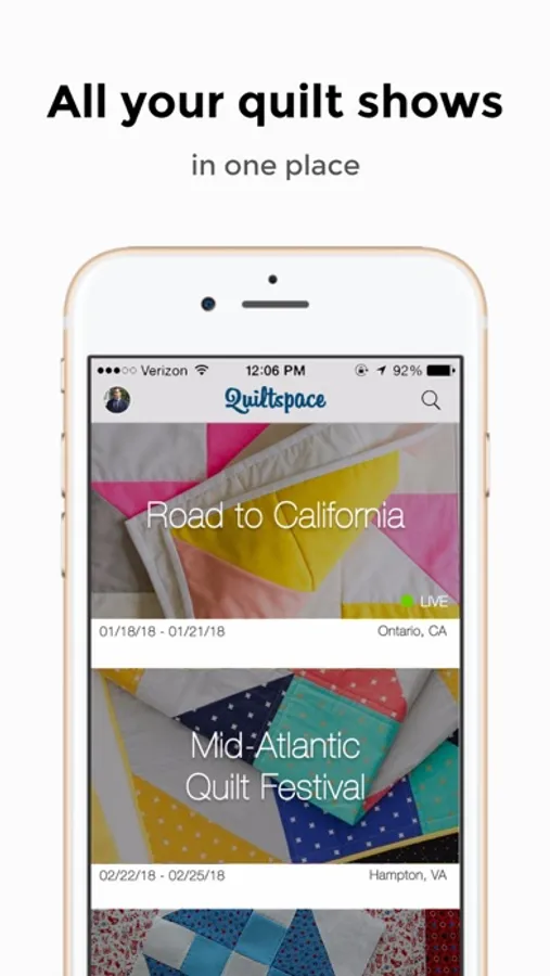 If you love quilting, this app is for you! Quiltspace is a free app that brings the world's most passionate quilters into one place. Attend quilt shows around the country, explore beautiful quilts, and share your experience with new friends and old.