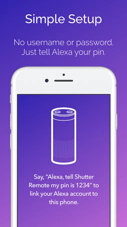 Setup is easy - just install the Shutter Remote skill, tell Alexa your pin, then start taking pictures. Shutter doesn't have a signup form, so you don't have to create a username and password, and you're not asked for your email address. You can add as many phones to your account as you'd like.