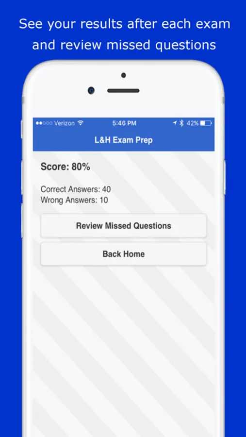 Practice Exams - App includes three practice exams. The answers are not displayed after each questions. The results of the exam are displayed at the end of the exam. Users can go back and review missed questions.