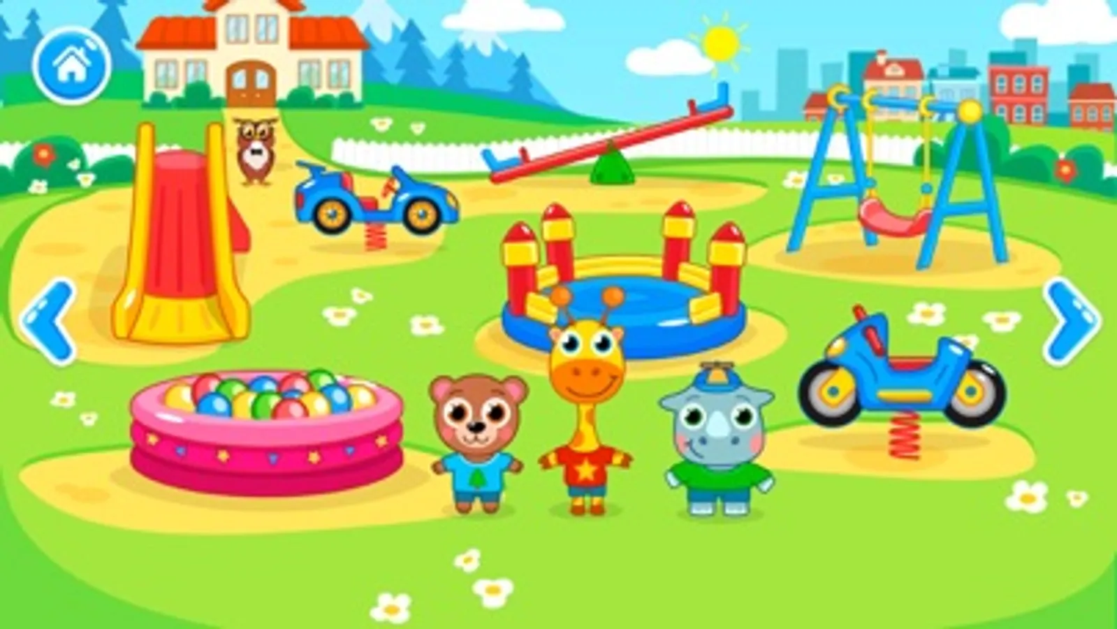 Each stage of the game displays processes which happen in kindergarten. You will be able to see how children spend time in kindergarten together, on the example of animals' kids.