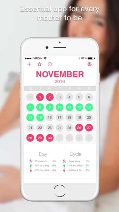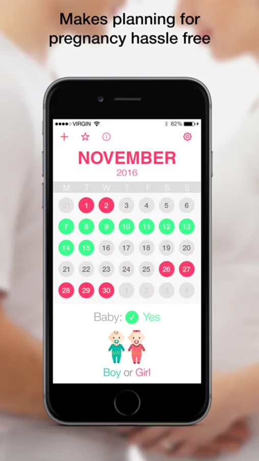 The app is based on real scientific researches. It helps you determine your fertile days of the month, so you can either achieve or avoid pregnancy. The calendar uses the date of your last period and shows the next period date, the best days to conceive a girl or a boy, your ovulation day and when you should avoid pregnancy. The application every woman must have!