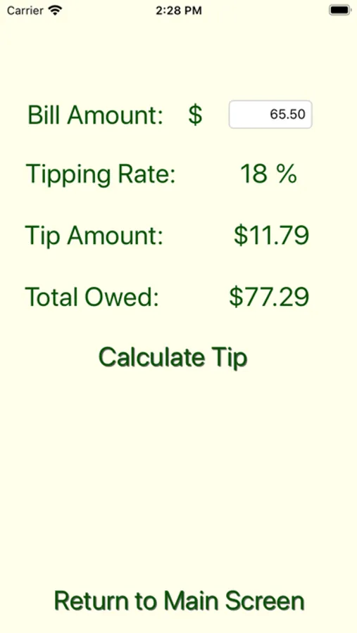 Tap over to the Calculate screen and your tipping percentage is already there. Enter the bill amount and let The Waiter Rater figure out how much to tip and what the total bill should be.