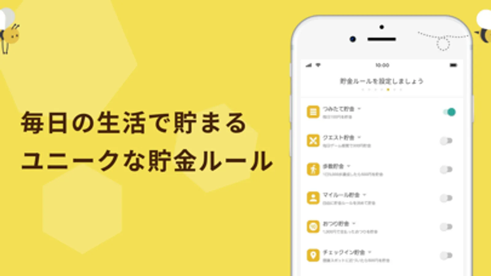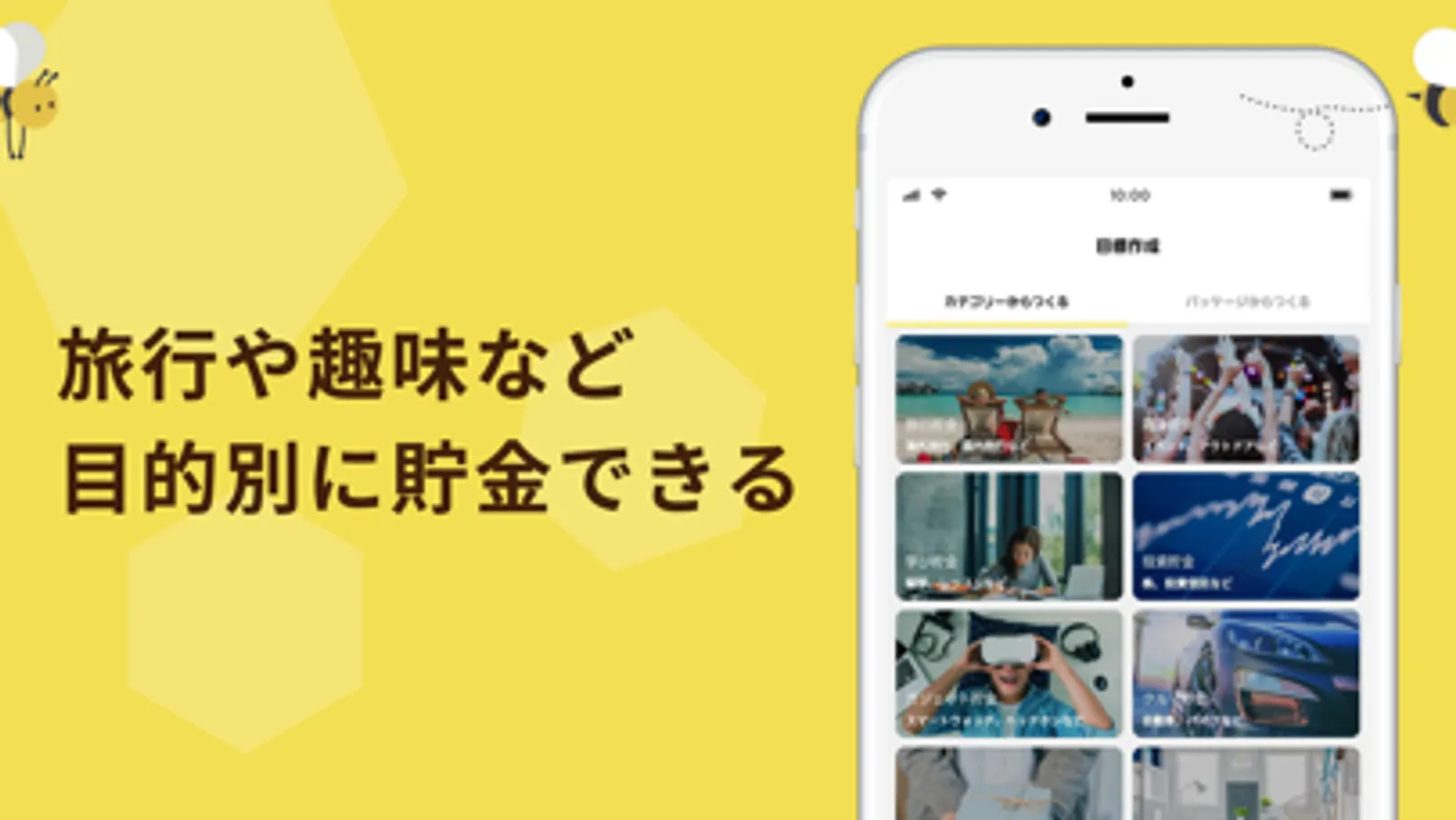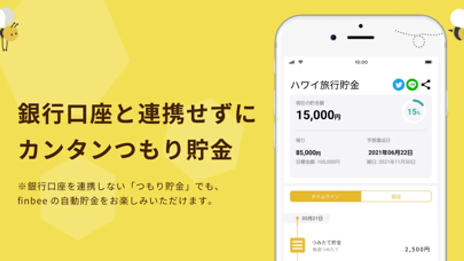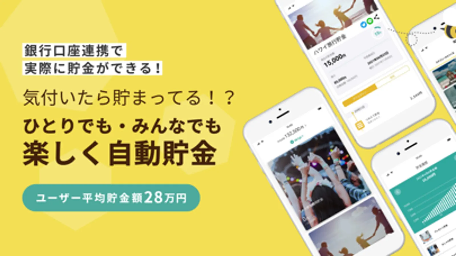 finbeeは、あなたの目標に向かって、楽しく、カンタンにお金を貯めることができる自動貯金アプリです。