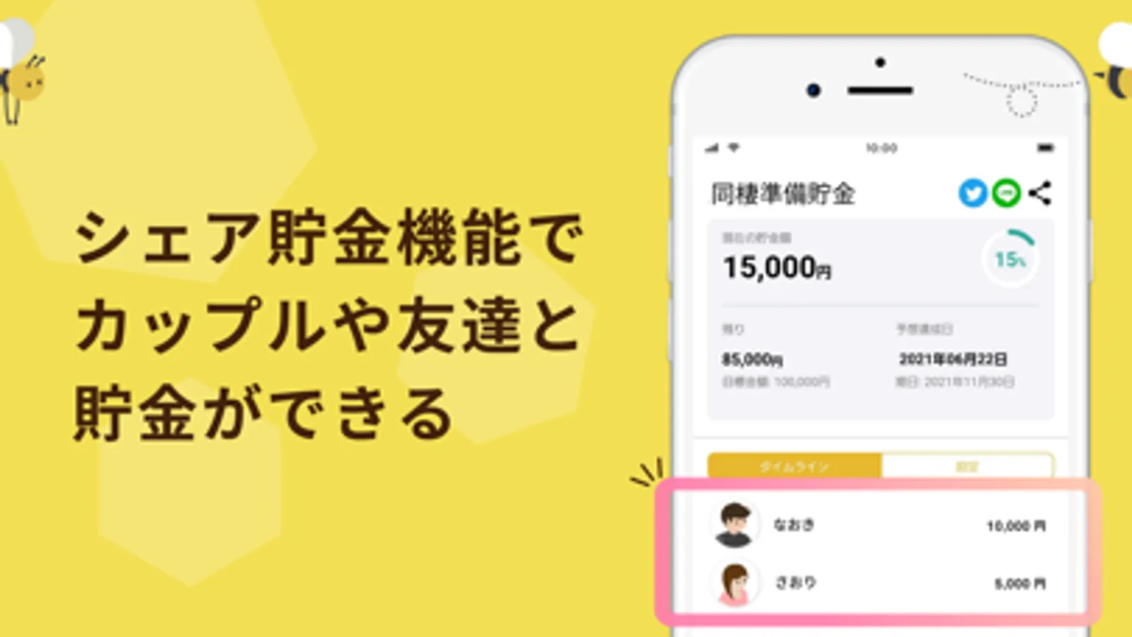 同棲や結婚式に向けての貯金など、カップルに人気な機能です。