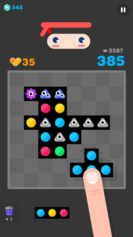 Defeat cute characters with power-ups.