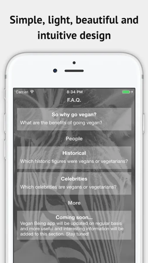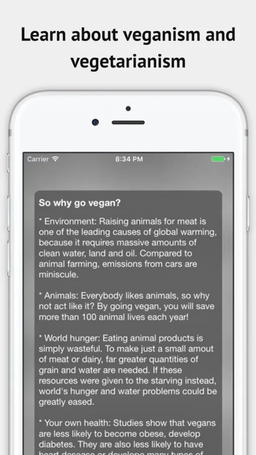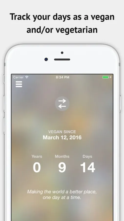 Going vegan or vegetarian can be one of the best decisions of your life! It's good for the planet, animals and you as well*. With Vegan Being you can start or continue to be vegan or vegetarian. Keep track of your progress, stay motivated with helpful advise and quotes. Learn information about this wonderful lifestyle.
