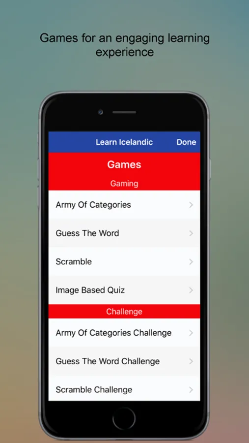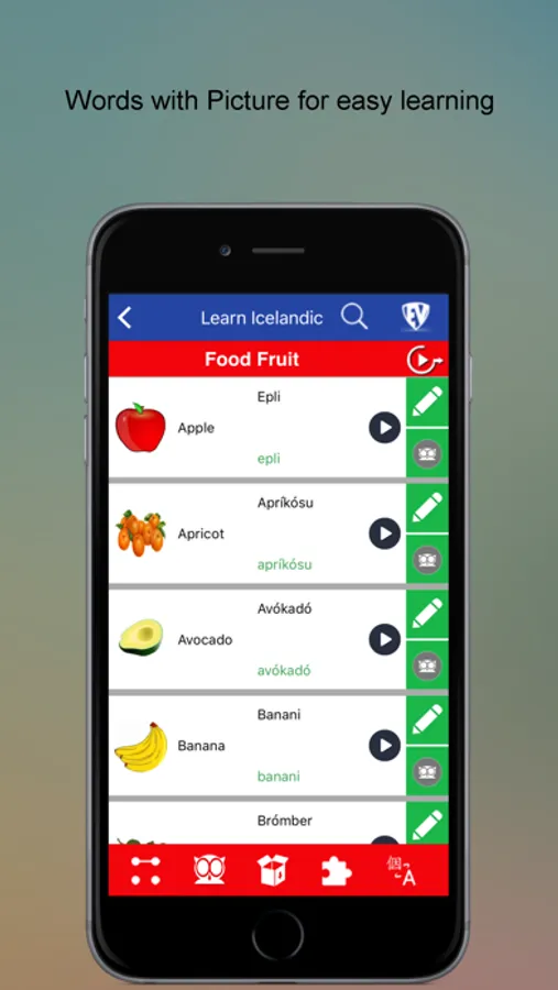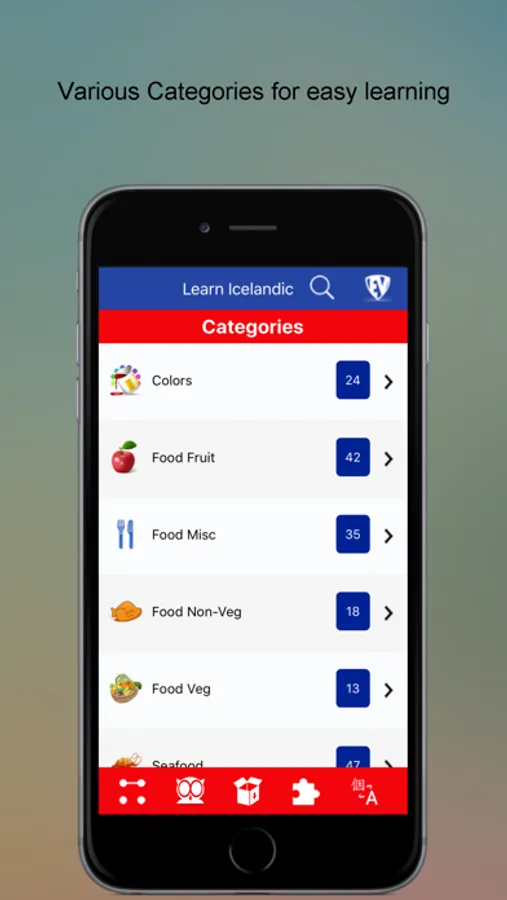 Speak Icelandic app with more than 2000 words in 55 categories like Food, Clothes, Numbers, Travel, Emergency, Health etc. is here to support you in Icelandic Language Learning. Our visual senses help us recall things easily, so this Learn Icelandic app is full of word images and audios for SMART learning. To be more interactive, this Learn Icelandic app contains different types of games.