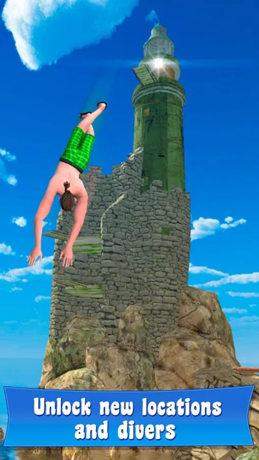 Your diver could be anyone – a pro athlete, old fart or even ordinary clerk – just choose the cliff do jump from it and dive without doubts and fear! Perform varies tricks and stunts during the jump – back dive, half twist, straight position! Try to perform all tricks without mistakes – do your best to earn maximum points! Use earned points to unlock new cliffs or other high places to jump down, new stunts and even new jumpers!
