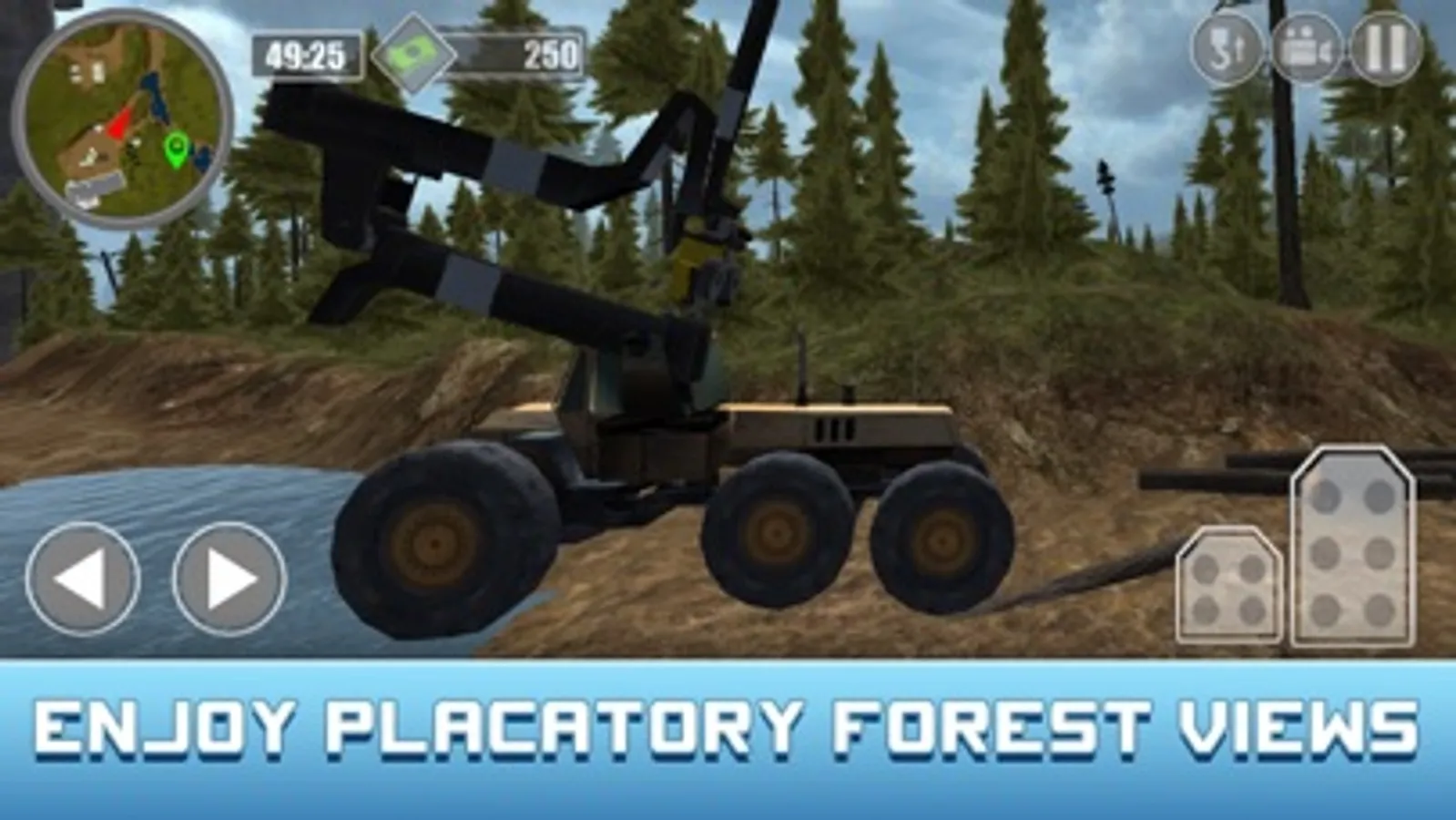 Get into your log harvester truck and follow this instruction: find the tree you would like to remove, file it down, cut off branches and put it in the truck. Transport logs to the lumber mill with your truck - enjoy the driving and parking simulator in one game!