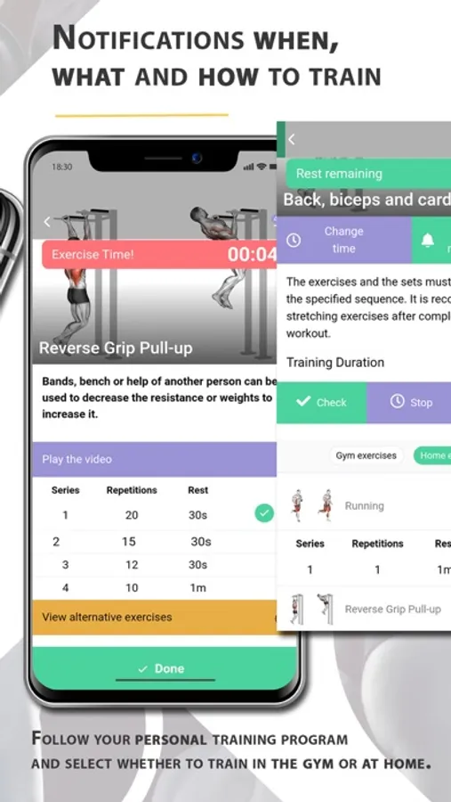 • Dynamic workout assistant keeping track of break time and exercise time.