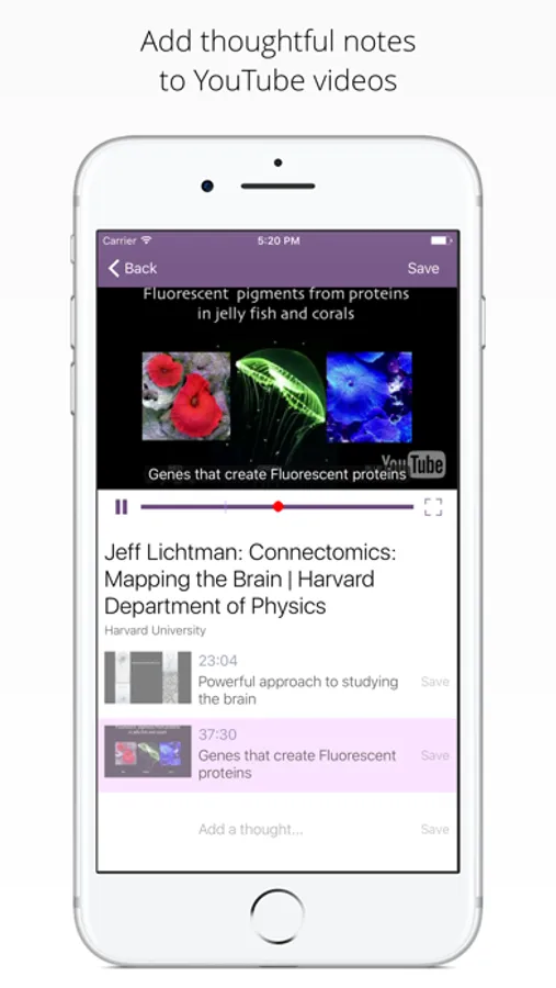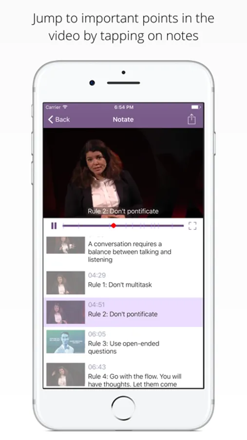 • Jump to important sections of the video by tapping on notes.