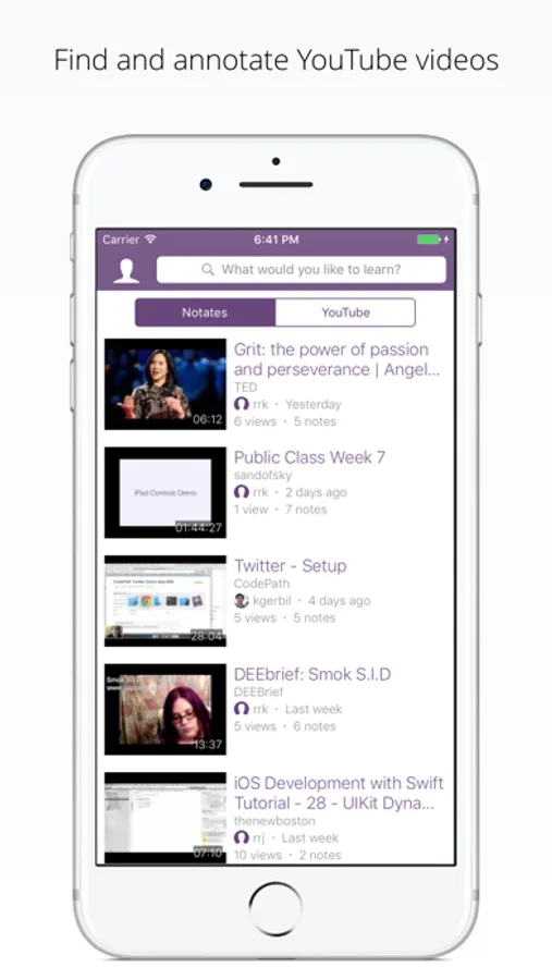 Notate is the best way to learn from videos. Available on iOS and on the web (www.NotateVideo.com). Bookmark and add notes at different points of a YouTube video, and then easily save and share these personally annotated videos.