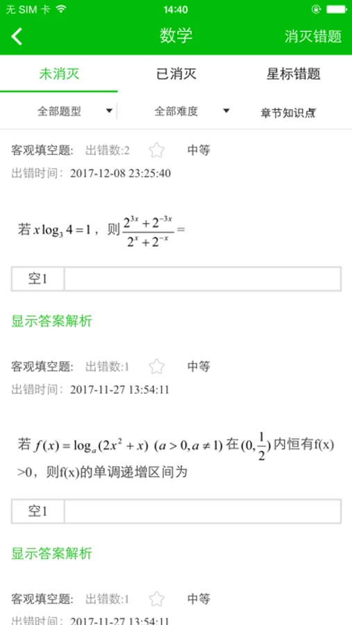 ④错题模块:学生在练习或作业中所做错的题目都会进入错题模块,学生可以进行错题的消灭与标注。