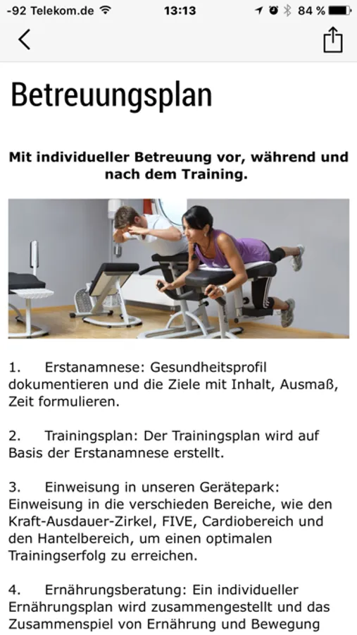 Das Wichtigste sofort im Blick: Suchen Sie nicht lange nach wichtigen Infos wie Öffnungszeiten und Kontaktdaten mehr. Dank der App genügt ein Klick auf das Smartphone, um Ihnen im Nu die gewünschten Informationen zu liefern. Stöbern Sie zusätzlich entspannt in aktuellen Studiofotos – ob Sie nun zu Hause auf der Couch liegen oder gerade am Bahnhof warten müssen. Hilfreiche Trainingstipps runden Ihre mobile Infoplattform ab. Der Clou: Alle Meldungen können Sie sofort per E-Mail mit Freunden und Bekannten teilen.
