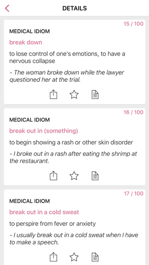 This app contains commonly used English idioms about medical and legal.