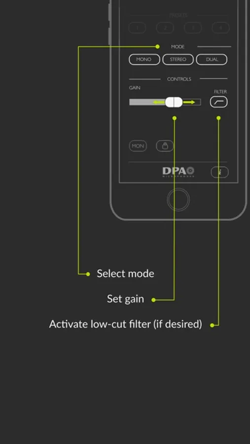 The App gives you more control over the sound you are recording / transmitting, so you are sure you end up with the end results you are looking for. The MMA-A App allows you to control the following settings: