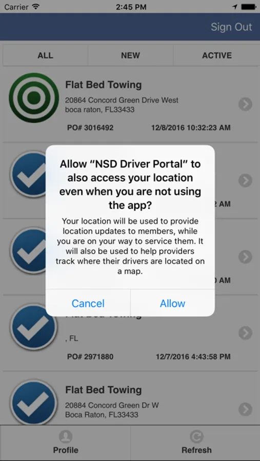 Allows drivers to see assigned dispatches, interact with NSD Dispatch Center and service alerts, share driver location and ETA count down for customer.