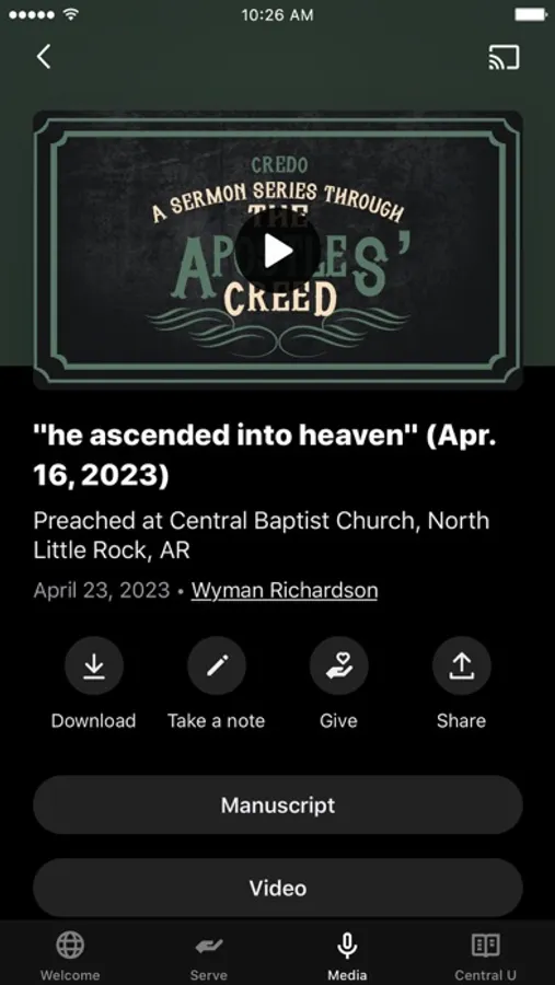 The Central Baptist Church NLR, AR App was created with the Subsplash App Platform.