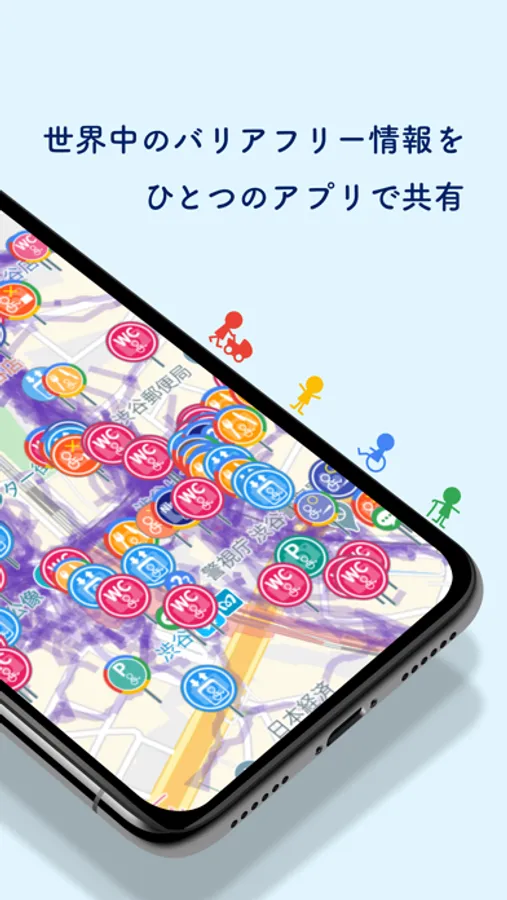 世界中のバリアフリー情報をひとつのアプリで共有でき、あなたの「行けた!」が誰かの「行きたい!」につながります。