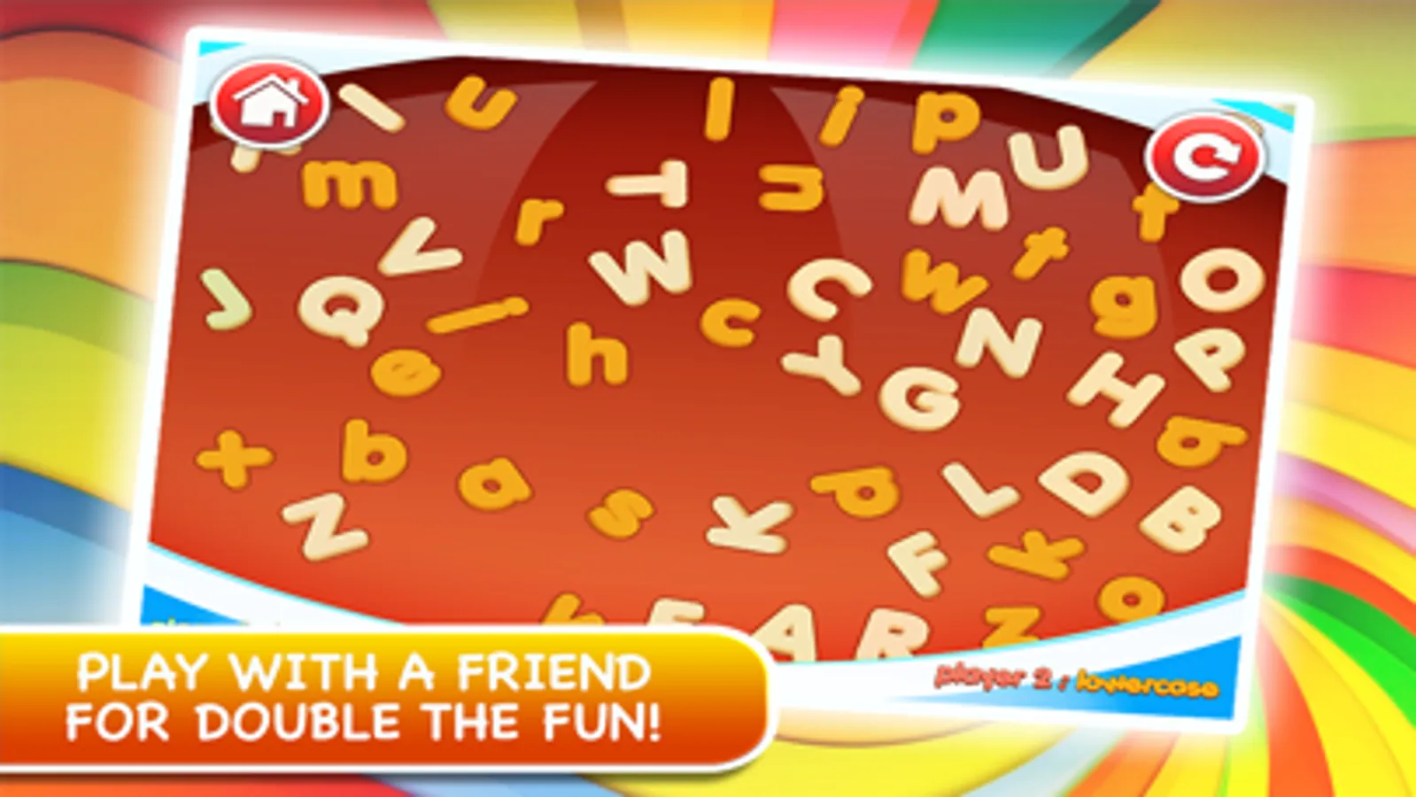Designed for use at home or early grade school classrooms, the game makes learning the alphabet fun and easy. Play along with your child to help them recognize both uppercase and lowercase letters and their sequence within the alphabet.