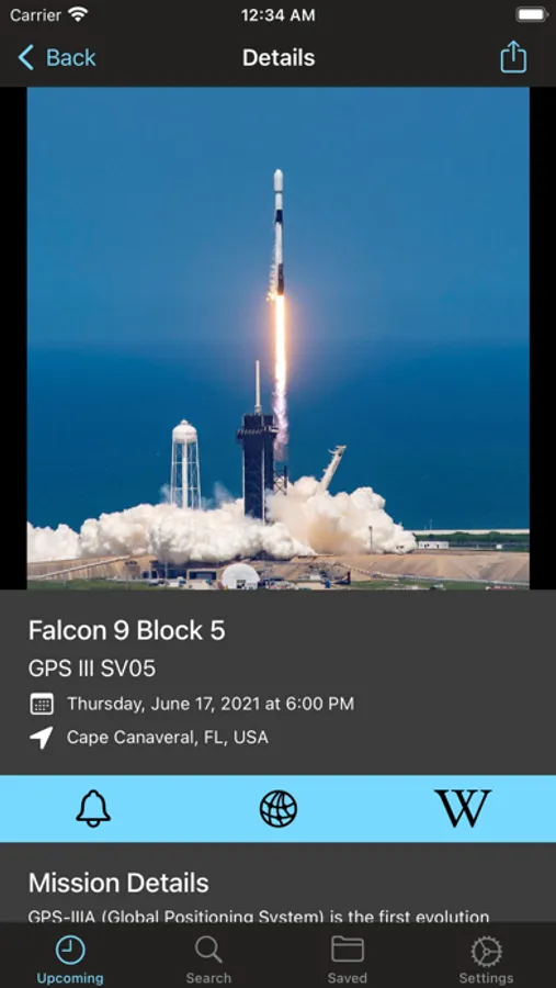 Liftoff is a simple app that allows you to view past and upcoming space launches from around the world. Use the advanced search function to search by launches, missions, launch vehicles, locations, agencies or date ranges.