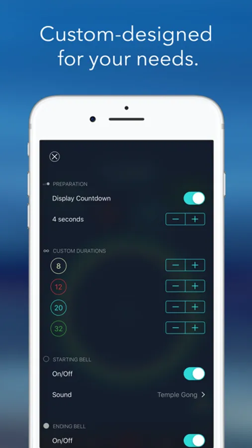 • Includes custom durations, custom begin and end bells, interval/focus bells, and more.