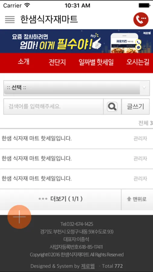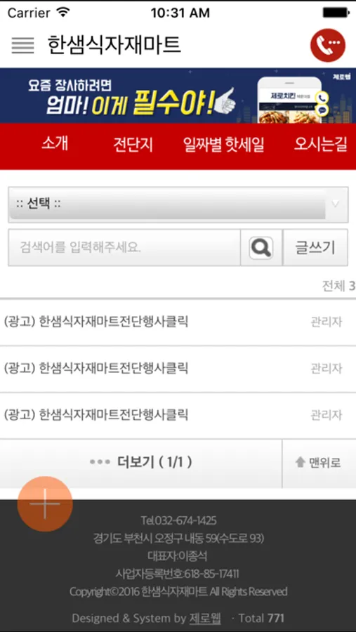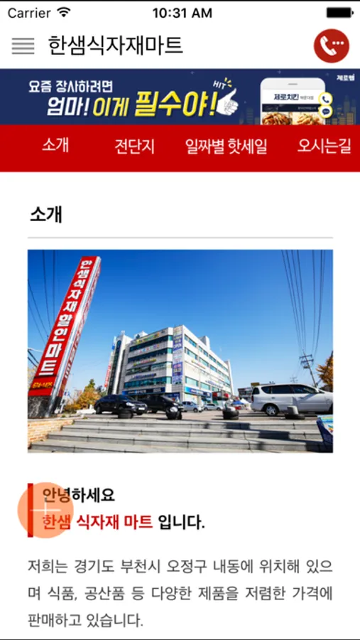 저희는 경기도 부천시 오정구 내동에 위치해 있으며 식품, 공산품 등 다양한 제품을 저렴한 가격에 판매하고 있습니다.