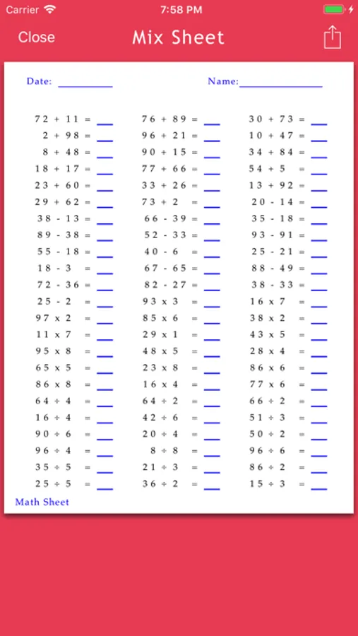 *****Need Math practice sheets, generate and Print directly from your phone. Print via Air Print or email it to yourself or use different sharing options*****