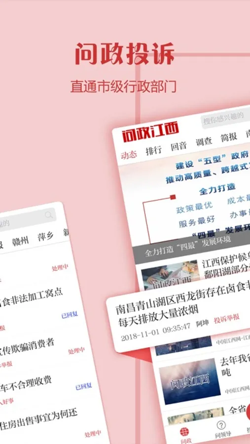 问政江西为政府与公众之间搭建一个最直接、高效的互动平台,问政效果明显,影响积极。其宗旨是通过问政方式,及时、准确解决网友的合理诉求,有针对性提交建言献策。