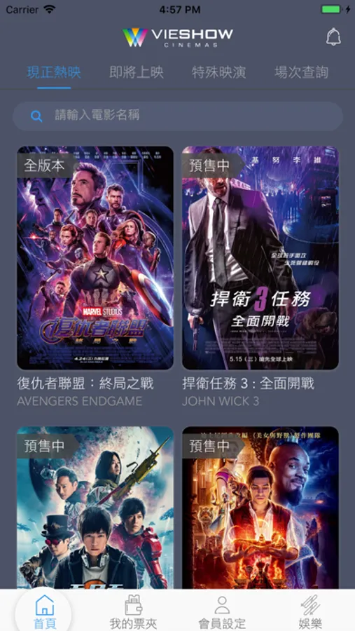 威秀影城官方APP全面進化購票消費體驗!「行動票券」購票後免排隊取票,手機直接進場最方便!此外,iShow會員訂票免卡一機搞定,包括:線上累點、線上儲值、虛擬條碼,通通收進你的手機裡。