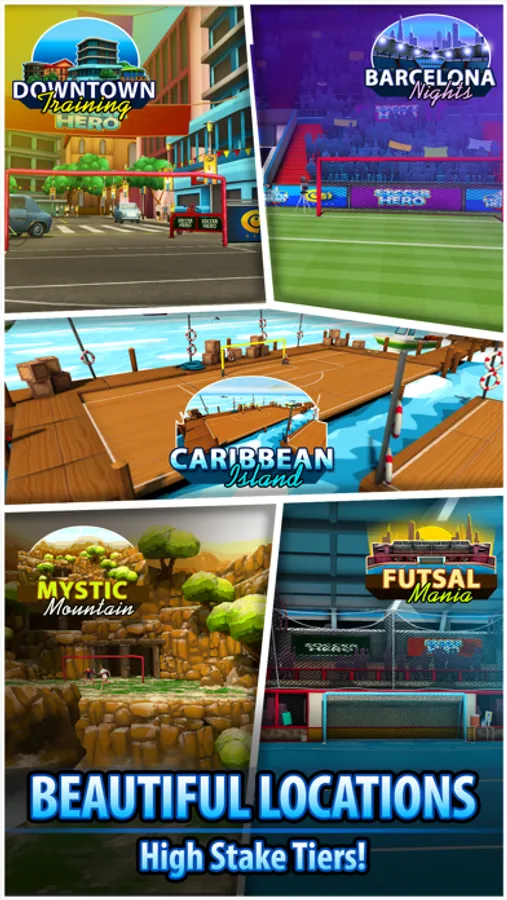 Collect new balls, kits, boots and unlock new locations as you perfect your soccer game skills in the quest to become the ultimate Soccer Hero!