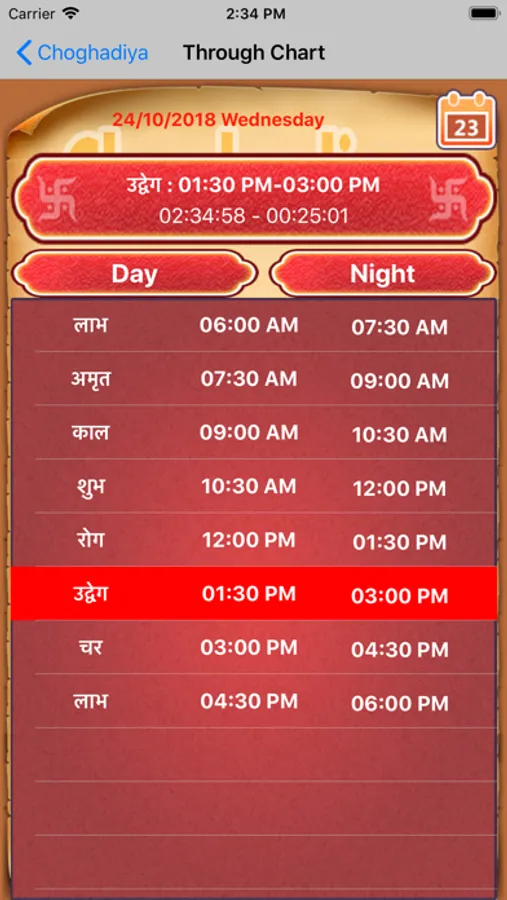 Shubh Labh Choghadiya App is used for checking auspicious time to start new work. Traditionally Choghadiya is used for travel muhurthas but due to its simplicity it is used for any muhurthas. There are four good Choghadiya Amrit, Shubh, Labh and Char to start auspicious work.There bad Choghadiya Rog, Kaal , and Udveg shoud be avoided. The time between sunrise and sunset is called day choghadiya and the time between sunset and next day sunrise is called night choghadiya.