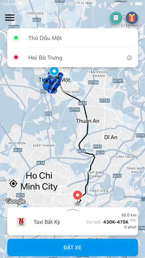 *Ước tính quãng đường và cước phí trước khi đặt xe khi nhập địa chỉ đi và địa chỉ đến