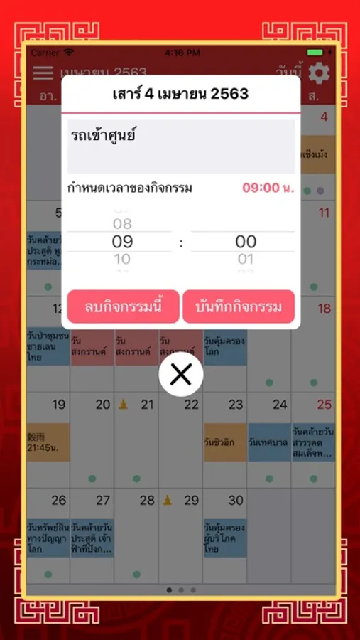 - ตั้งเวลาแจ้งเตือนกิจกรรม/วันนัดหมายล่วงหน้าได้