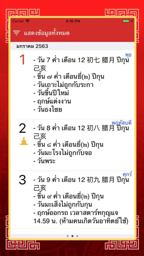 ** ข้อมูลในปฏิทินอัพเดททุกปี