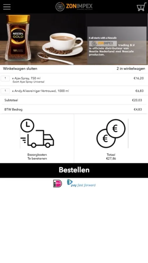 U kunt veilig en snel via uw mobiel betalen met iDEAL of natuurlijk contant aan de deur.