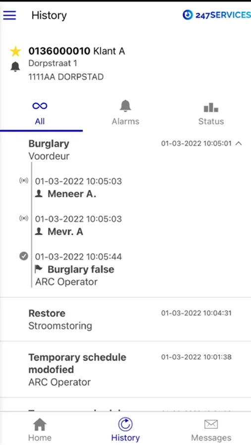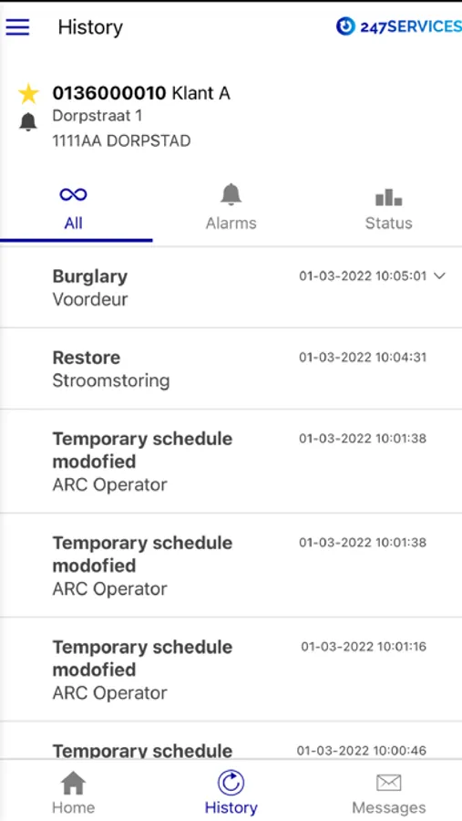 With the app of 247Services you always have control of your alarm system. Dealing with alarms through the app, entering new key holders or putting your alarm system into maintenance. It is all possible with this app without the intervention of an alarm center or alarm installer.