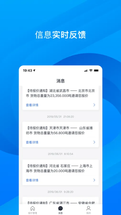 订单管理:实时报价、调度反馈,反馈信息实时推送至委托人,实现运营信息化;