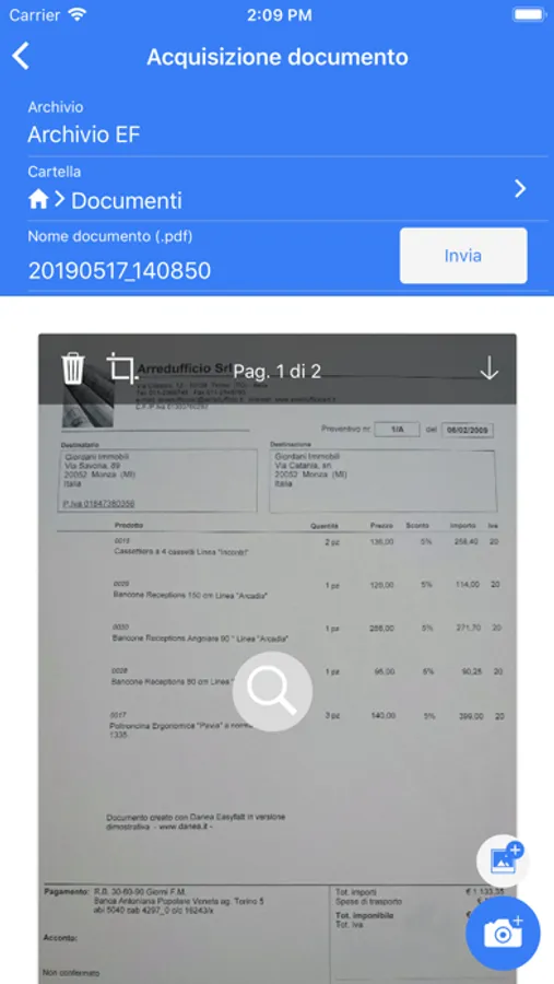 2) Invii il PDF del documento al tuo archivio Easyfatt o Domustudio.