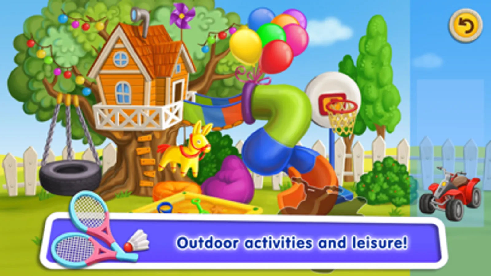 2) The "outdoor" puzzles will get your baby acquainted with different ways of spending time in the open air: a playground with a tree house in the yard, a picnic, poolside leisure, overnight in a tent by the lake, a beach holiday by the seaside.