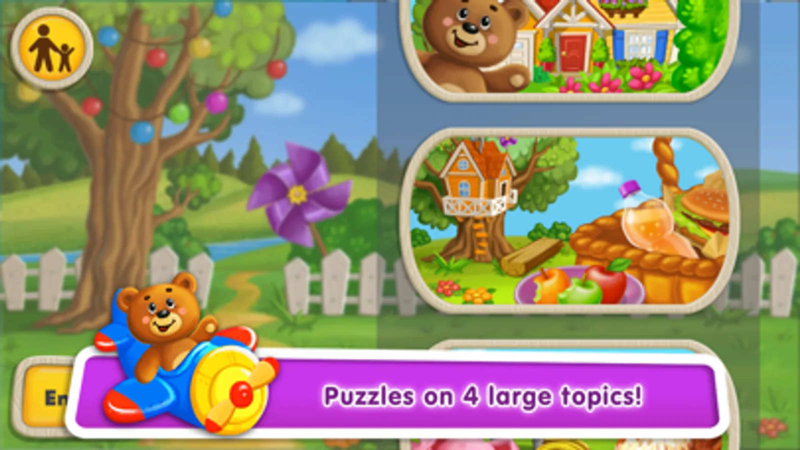 - 100+ new words! Collect puzzles and learn words on the following topics: "home", "outdoor", “animals”, “transport connection”.
