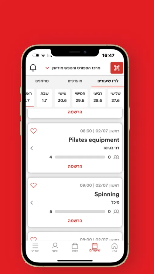 כל מה שצריך לרישום מראש לשעורי סטודיו, ספינינג, פילאטיס, מחול ועוד.