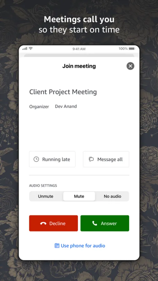 • Tap to join meetings – no more lengthy pin numbers