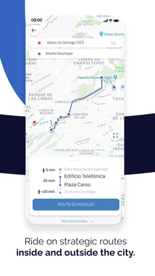 Find the routes you use on a daily basis and secure a seat in safe and optimized vans.